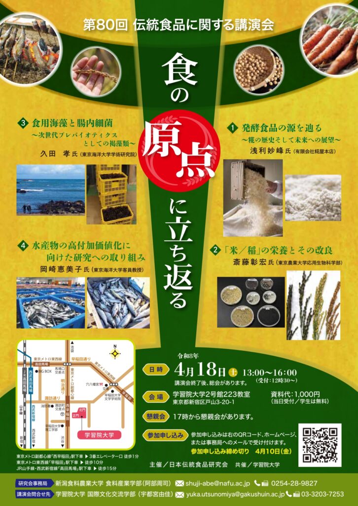 【講演会のお知らせ】日本伝統食品研究会主催の「第80回 伝統食品に関する講演会」に、こうじ屋ウーマン 浅利妙峰 が登壇します。 ■日時2026年4月18日(土)13:00~16:00 ■会場学習院大学2号館223教室 ■…